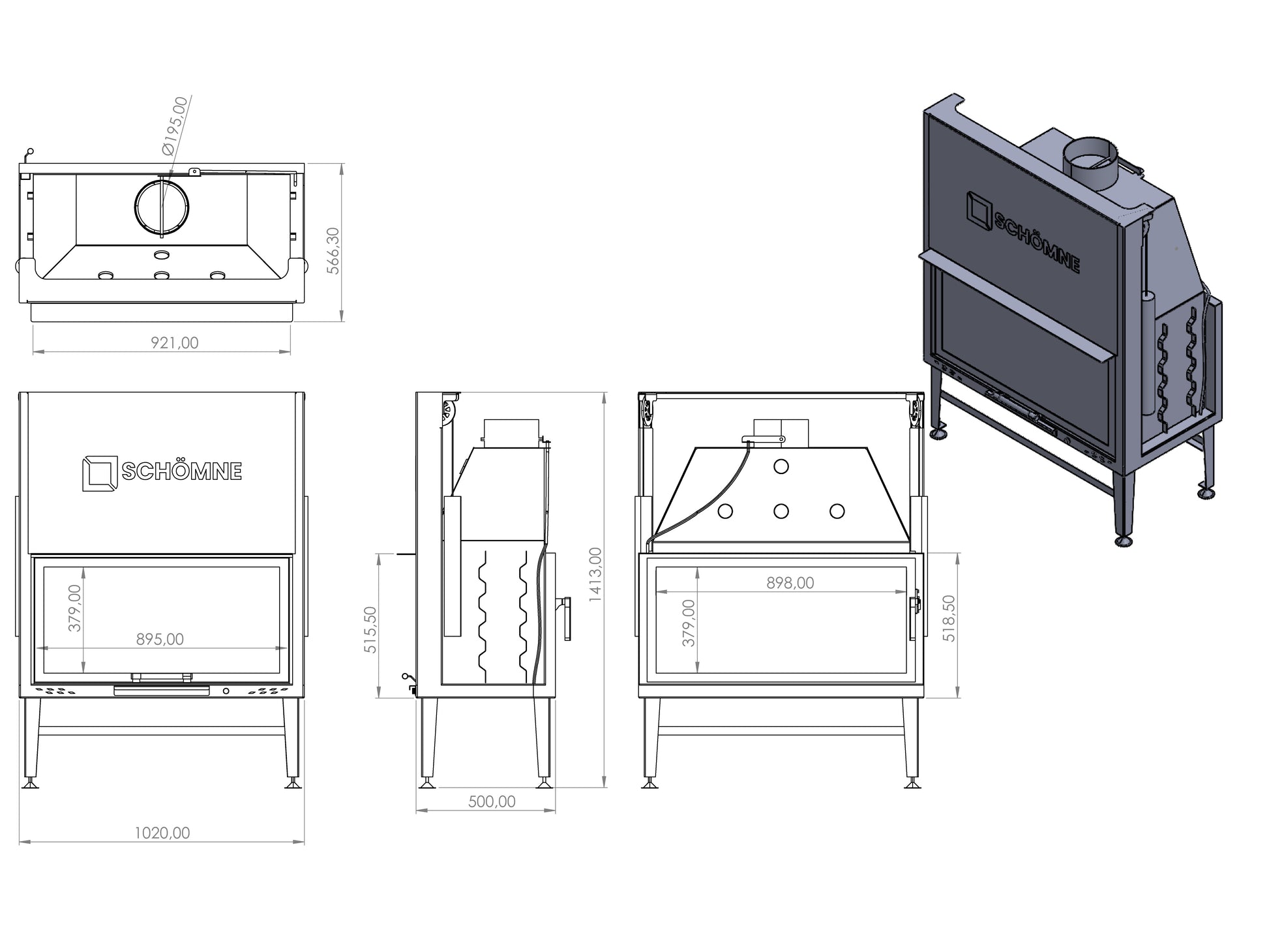 100 cm Tunnel Elevator Fireplace Chamber