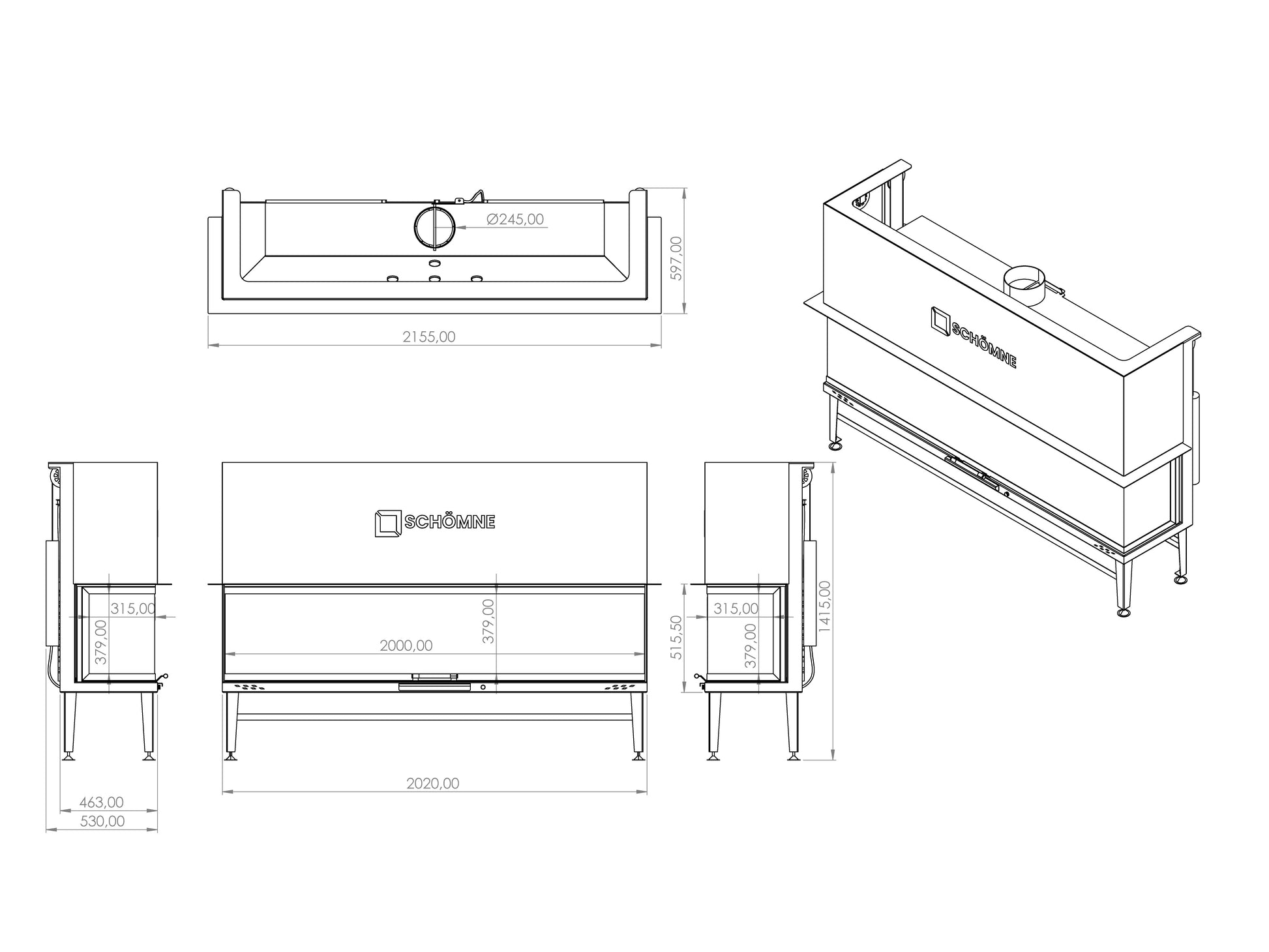 200 cm Fireplace Chamber with Three Sides Glass and Elevator