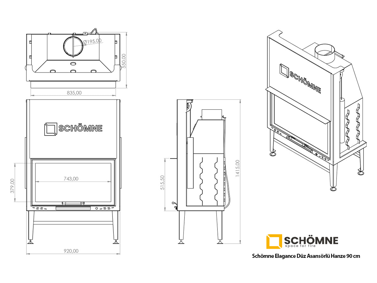 90 cm Flat Open Elevated Fireplace Chamber