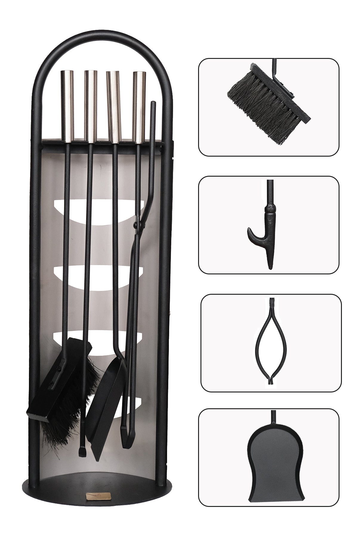 5-Piece Fireplace Accessory Set. You will have everything you need to use your fireplace or stove safely, fan the fire and clean the ashes.