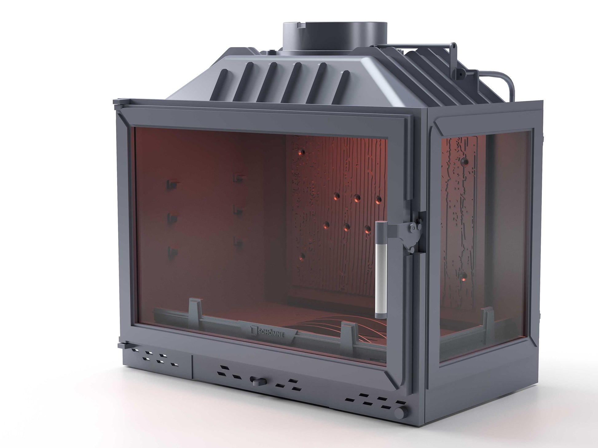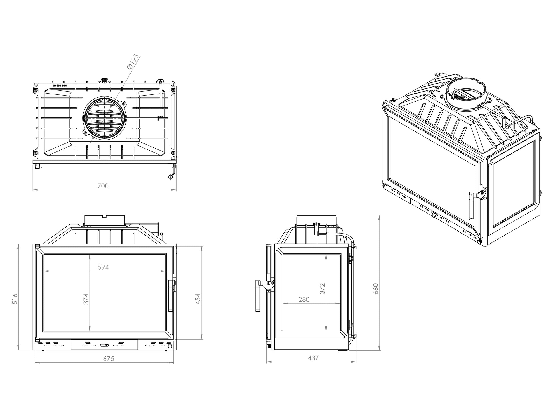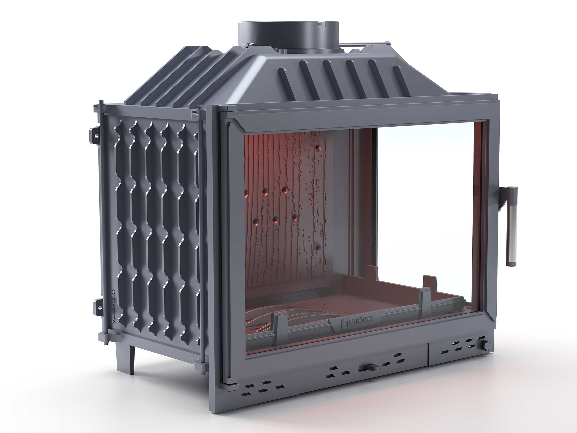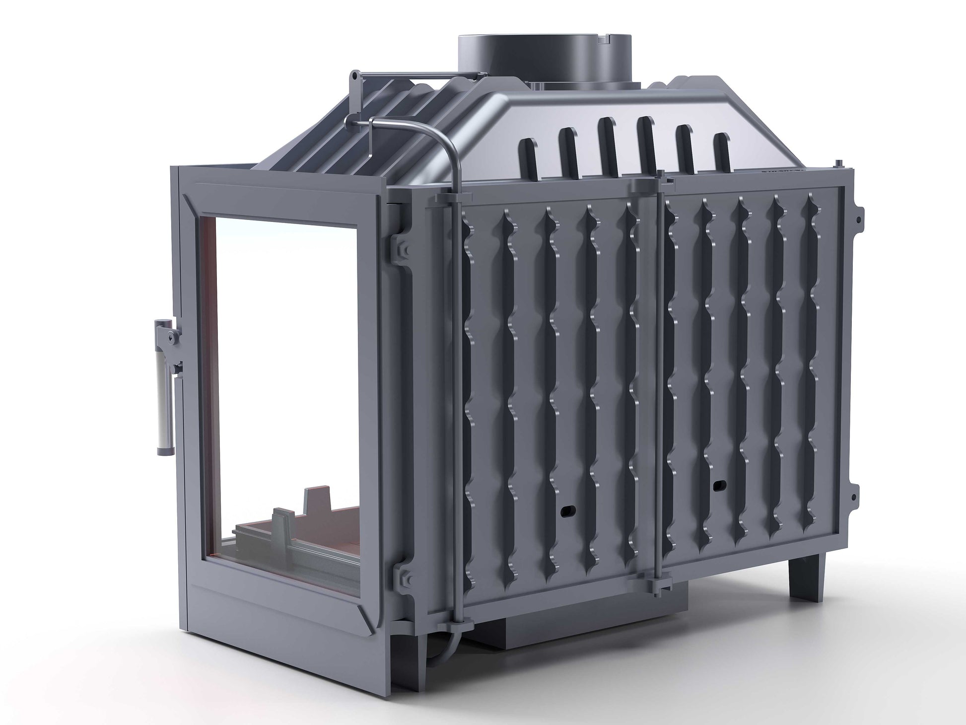 Cast Fireplace Chamber with Flap and Right Glass 70 cm