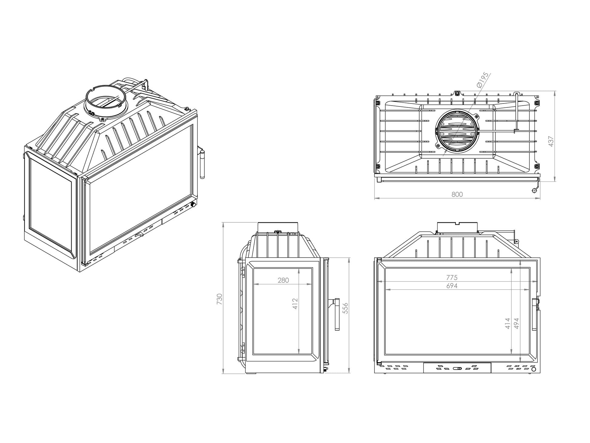 Cast Fireplace Chamber with Flap and Left Glass 80 cm