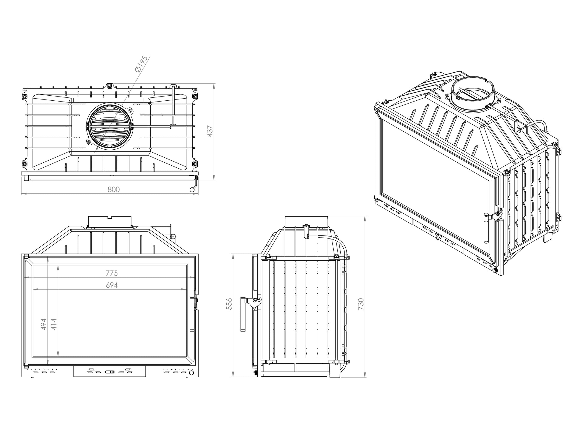 Cast Fireplace Chamber with Flap, Single Glass, 80 cm