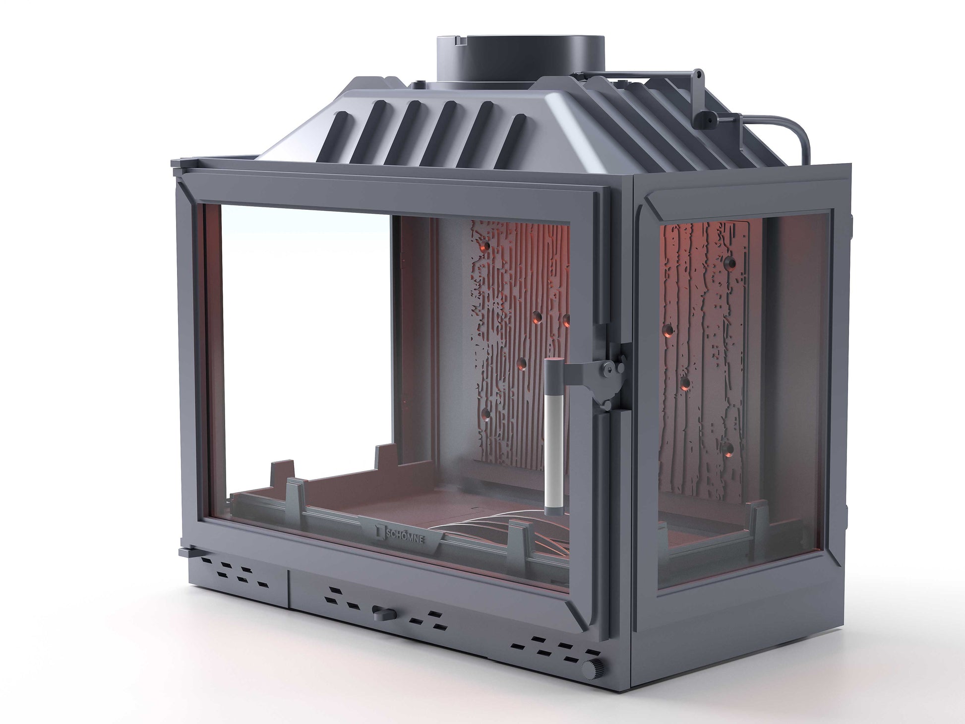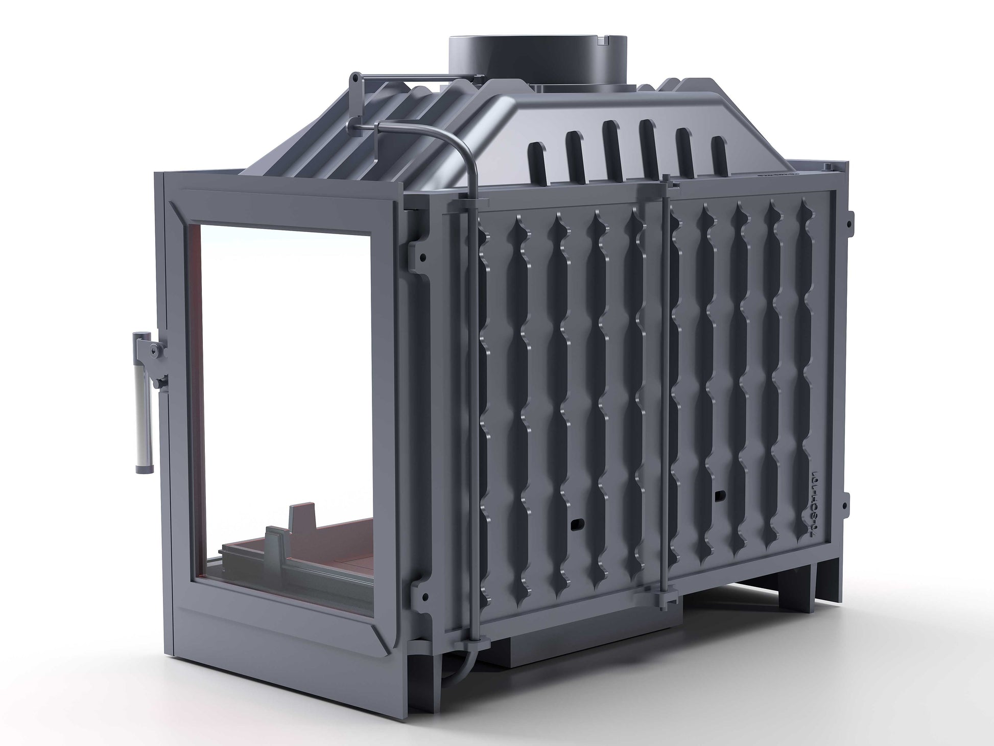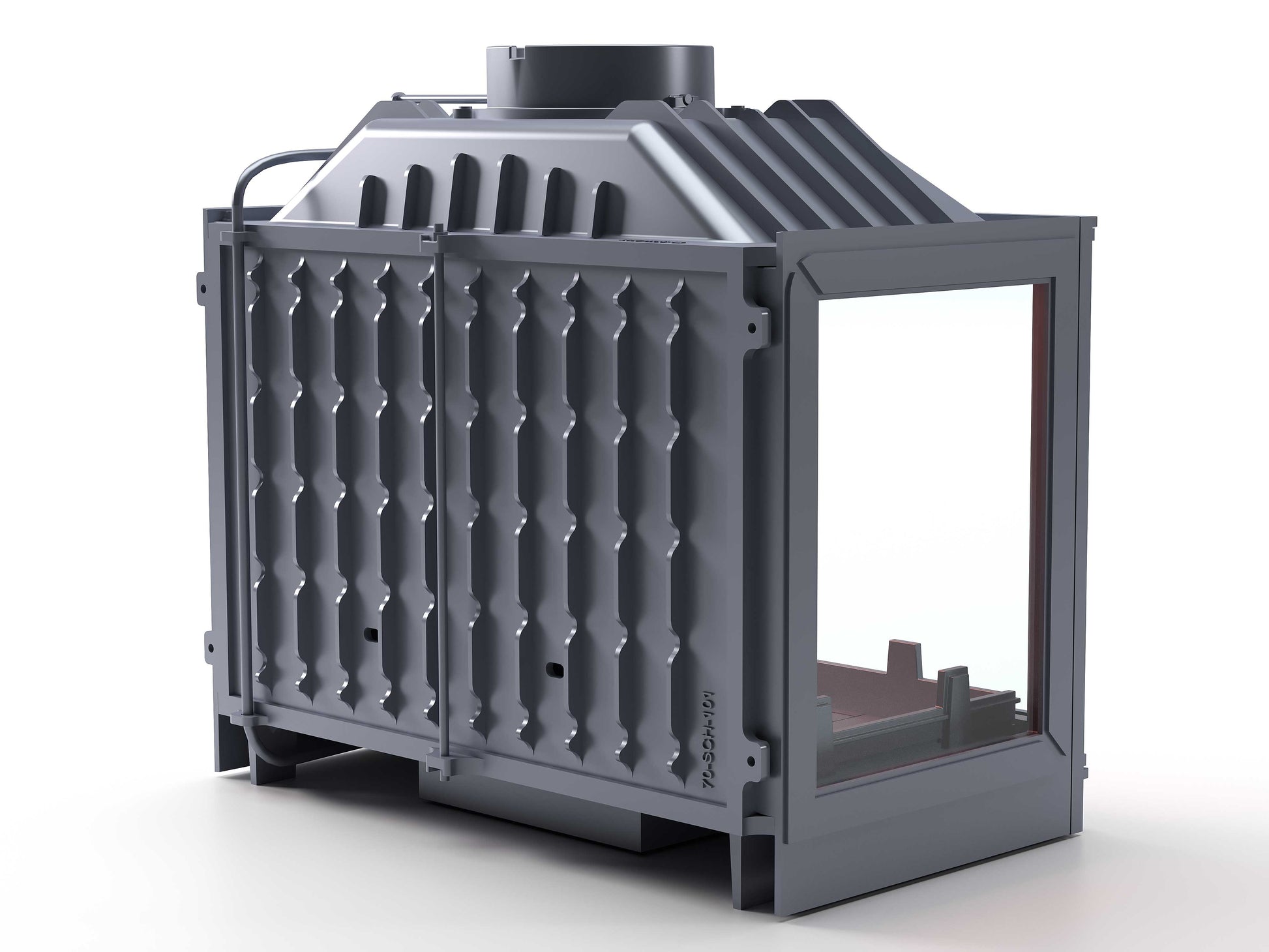 Cast Iron Fireplace Chamber with Flap and Glass on Three Sides 70 cm
