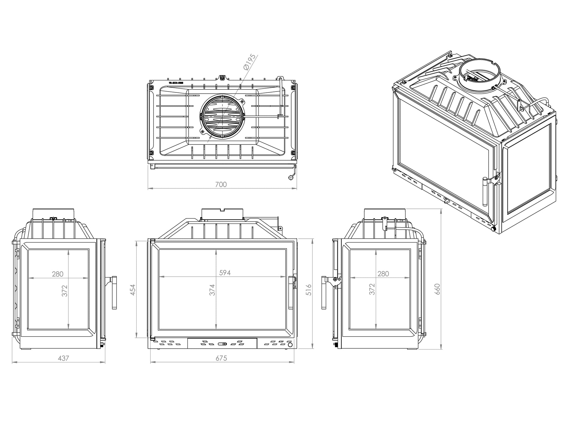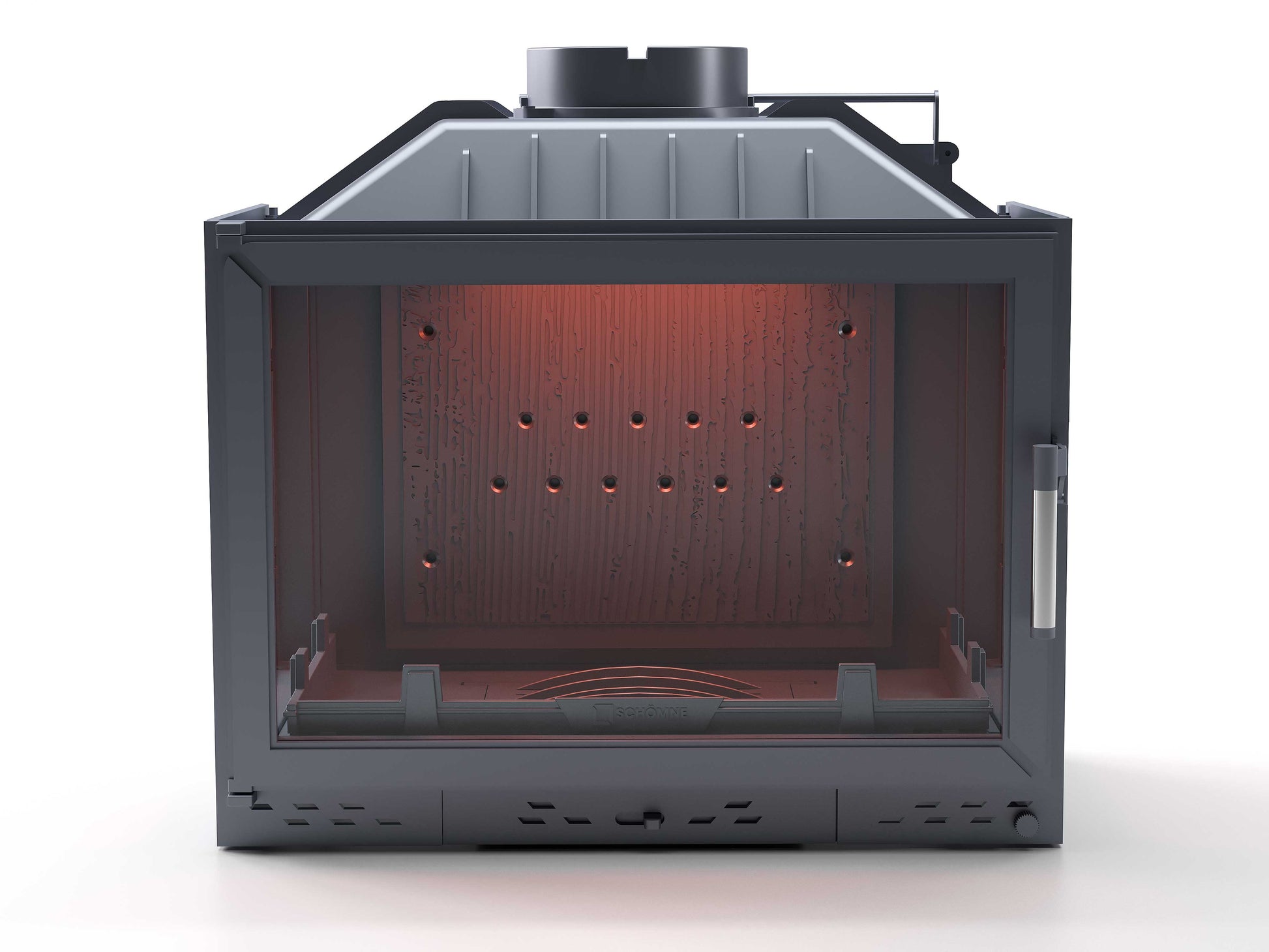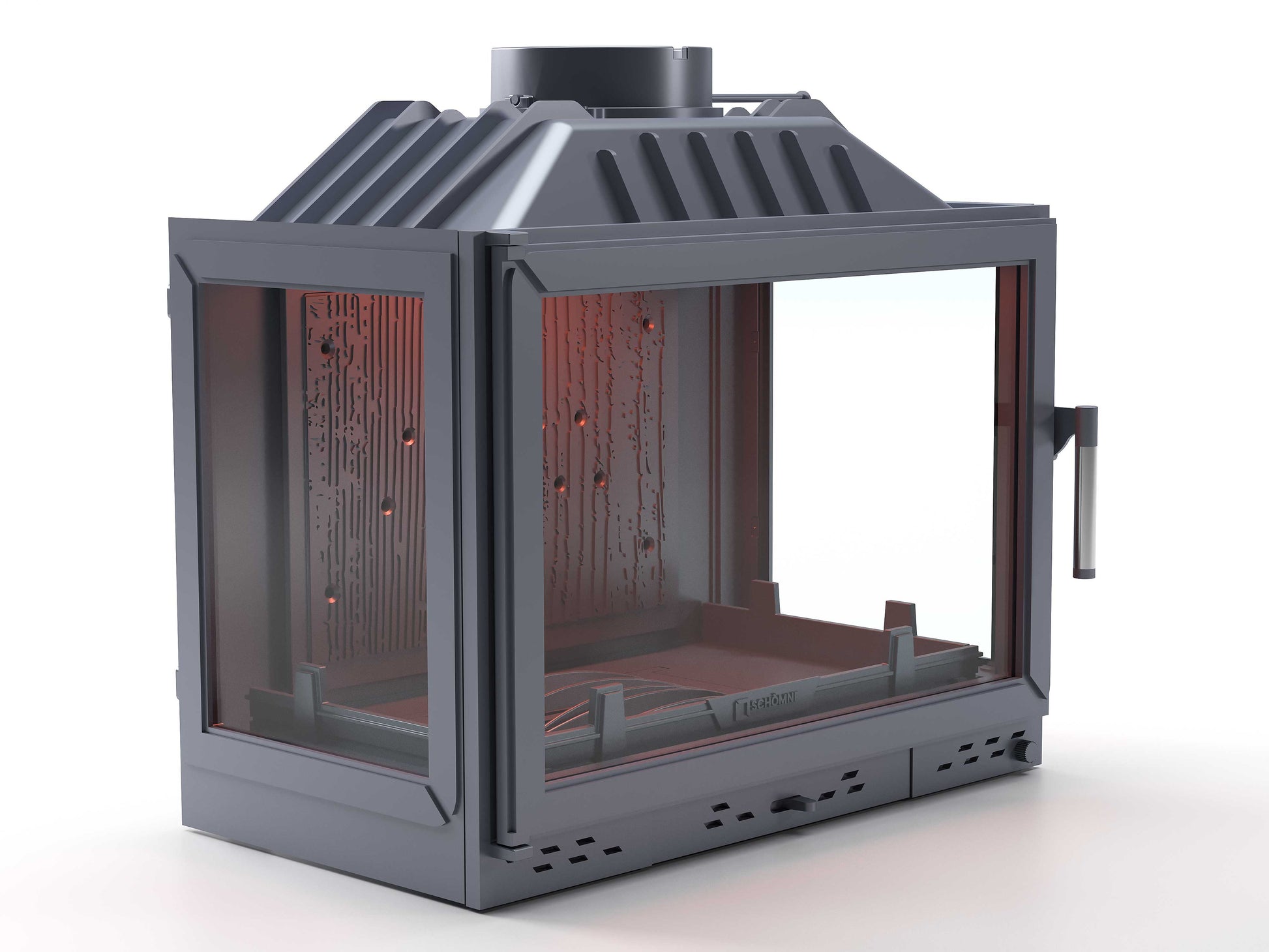 Cast Iron Fireplace Chamber with Flap and Glass on Three Sides 70 cm