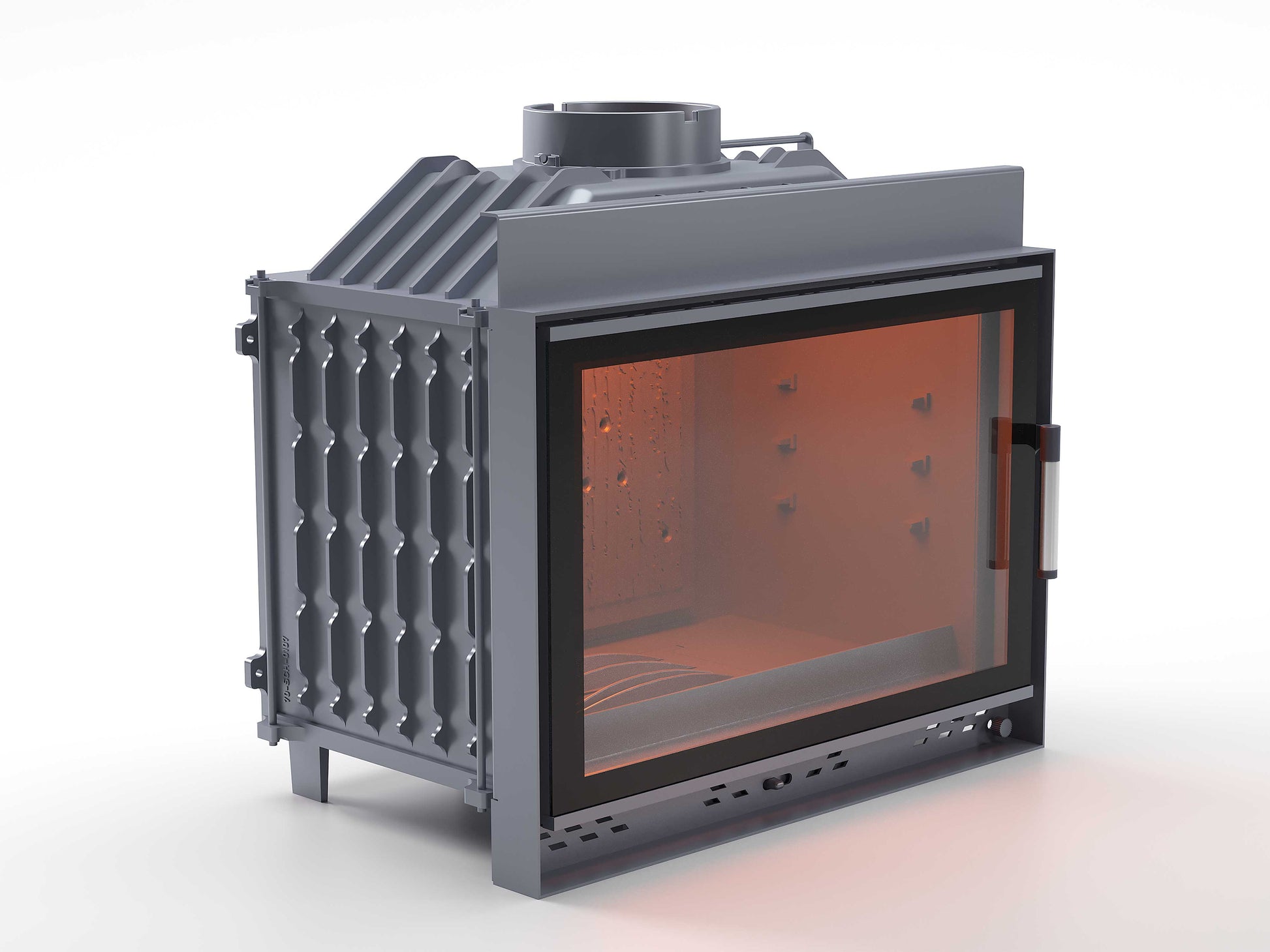Black Glass Flap Cast Iron Fireplace Chamber Single Glass 70 cm