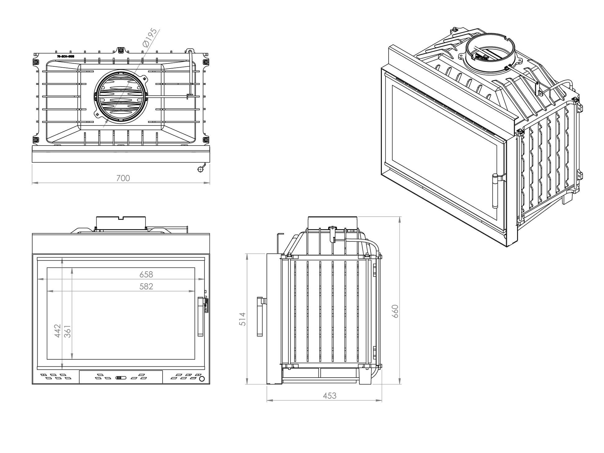 - Chimney Diameter: 195 mm