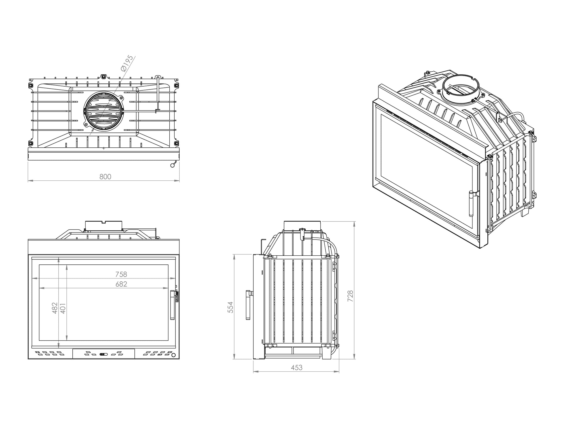 Black Glass Flap Cast Iron Fireplace Chamber Single Glass 80 cm