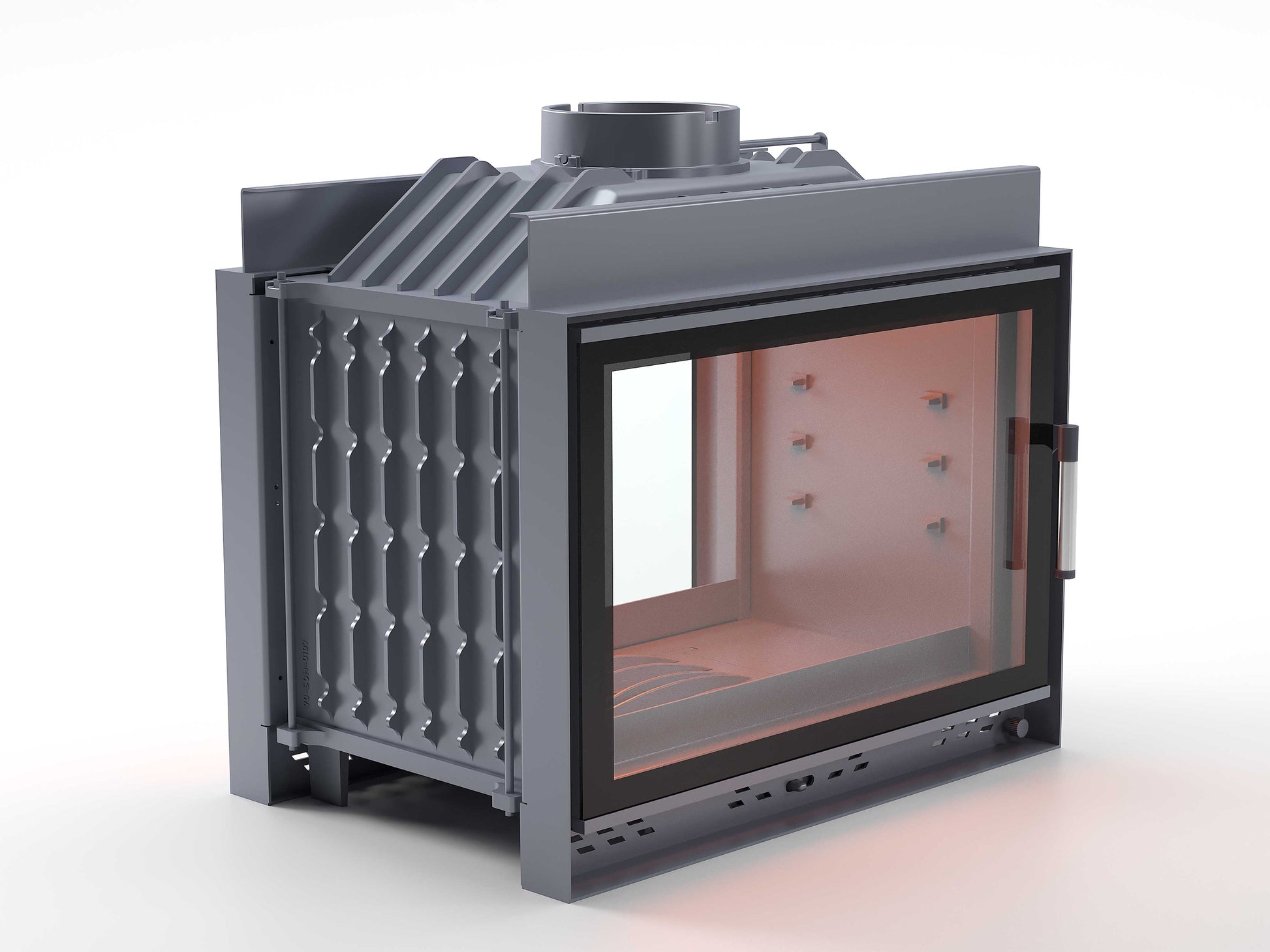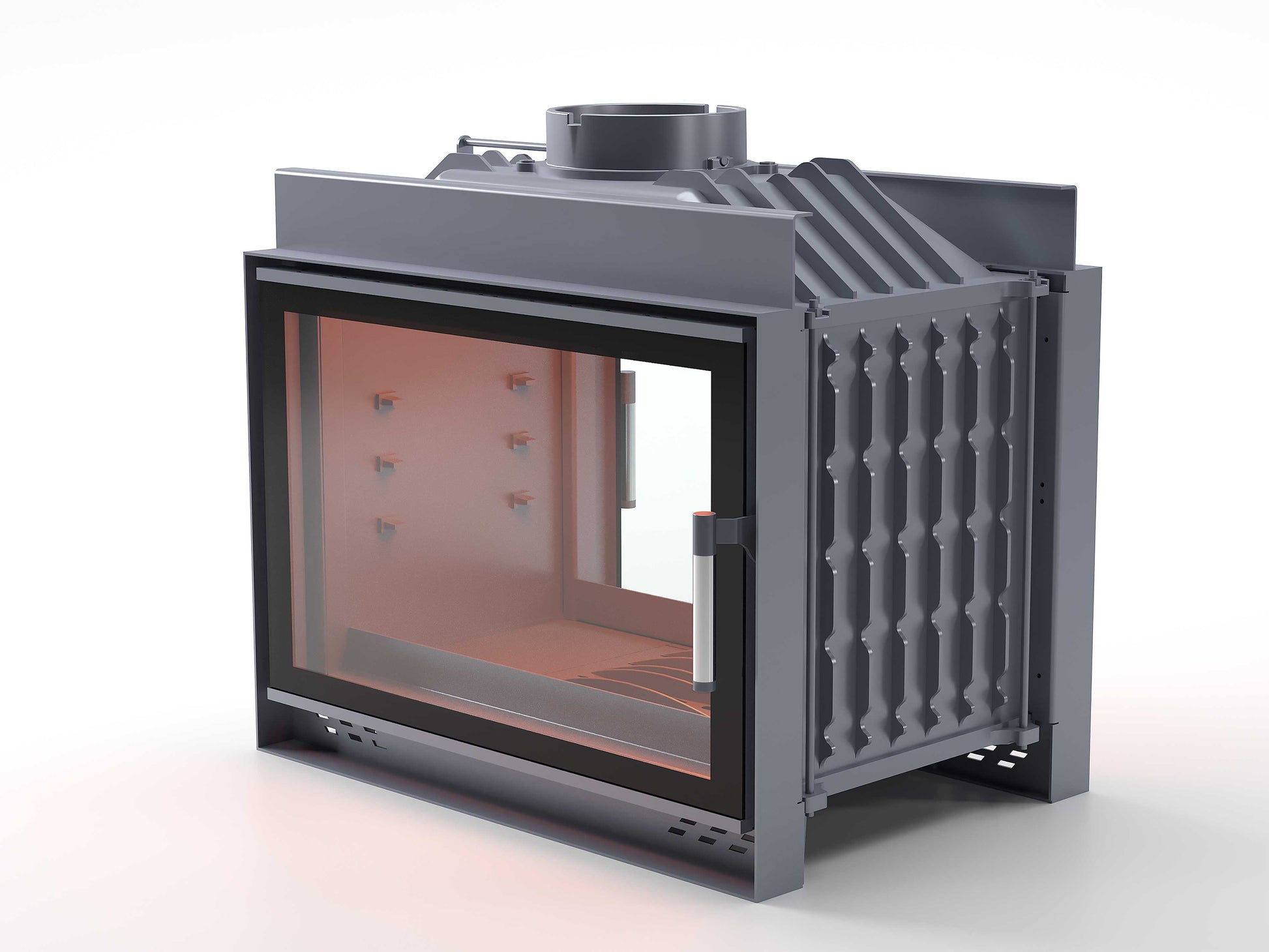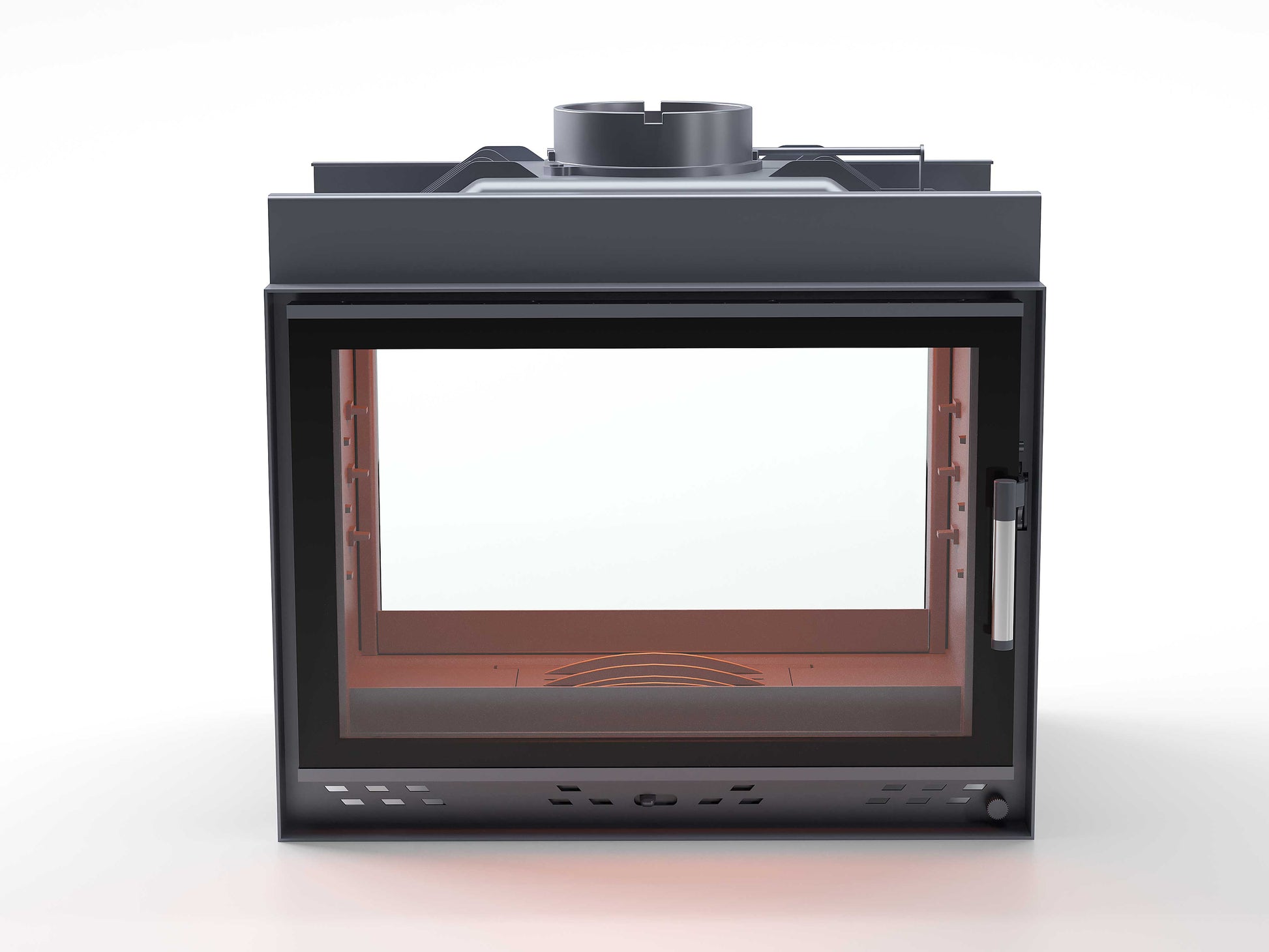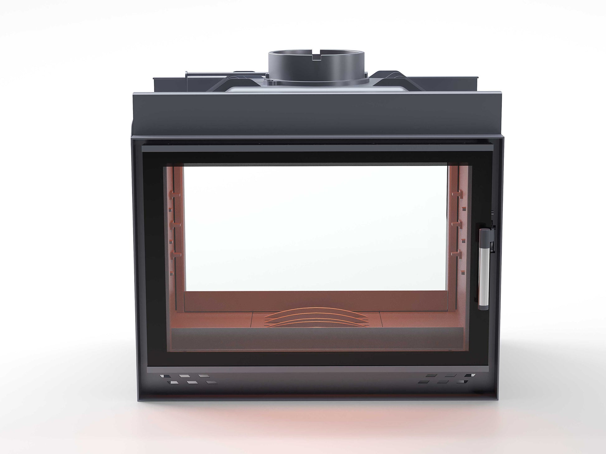 Black Glass Flap Cast Fireplace Chamber Tunnel 70 cm