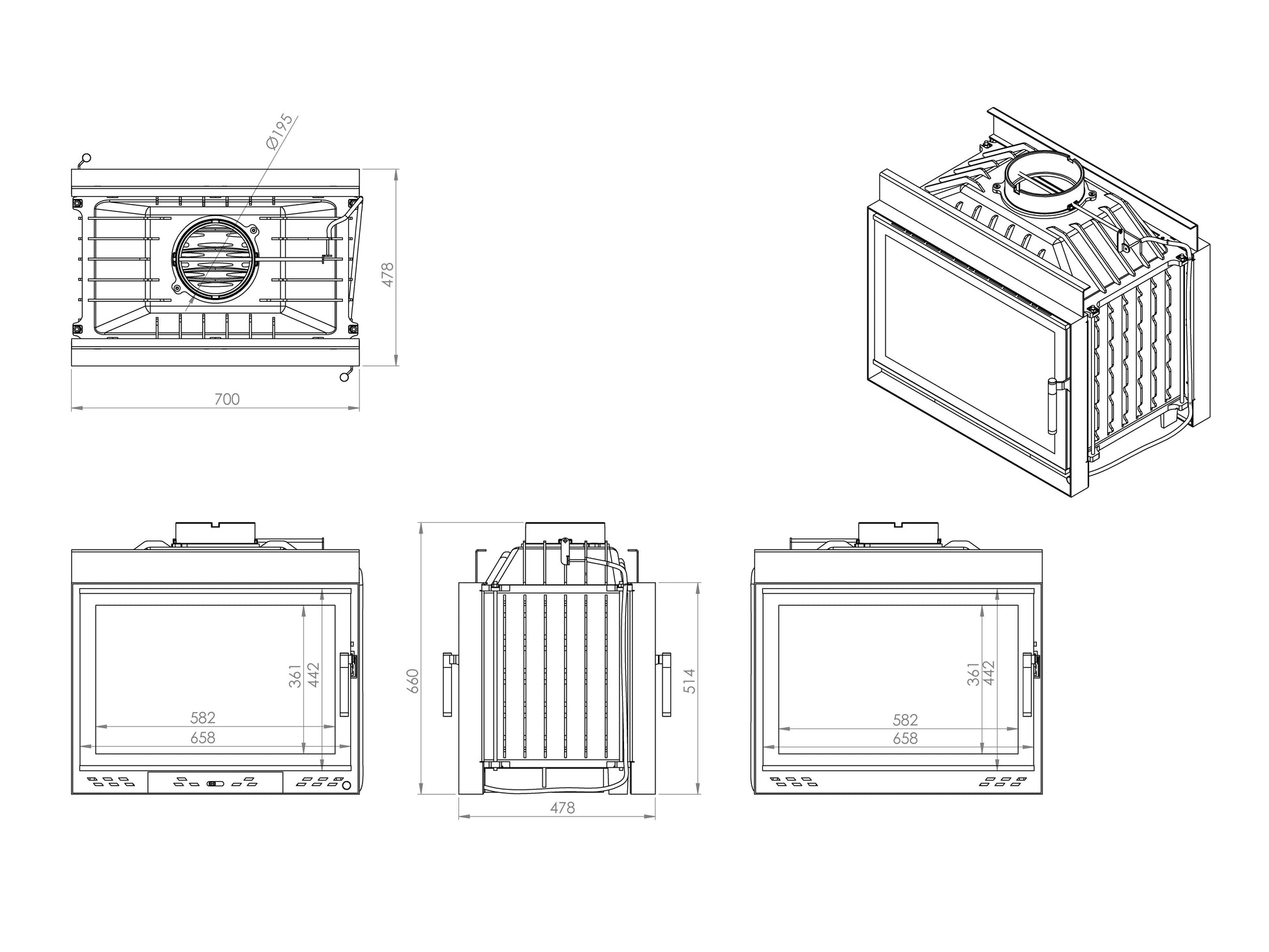 - Chimney Diameter: 195 mm
