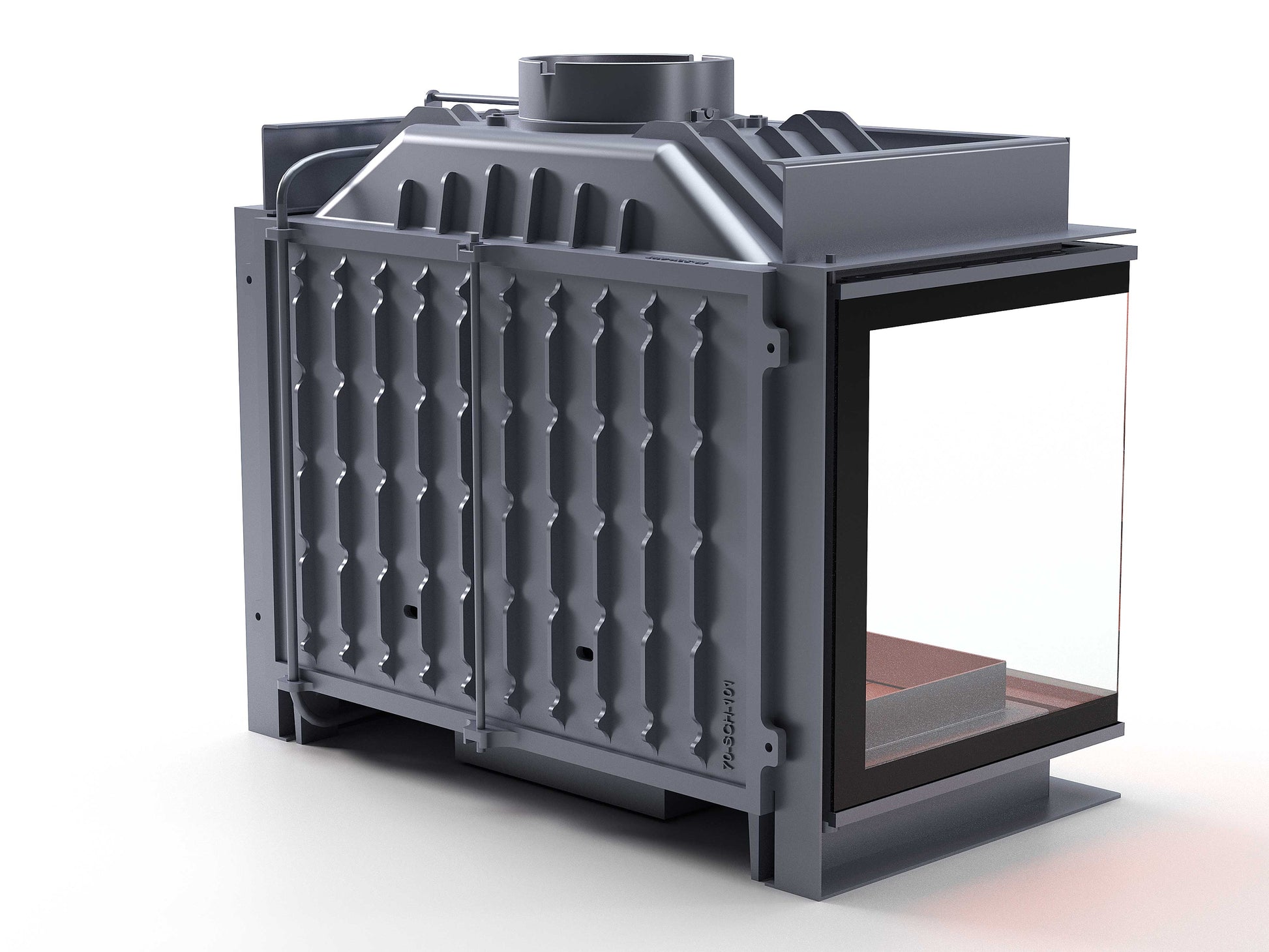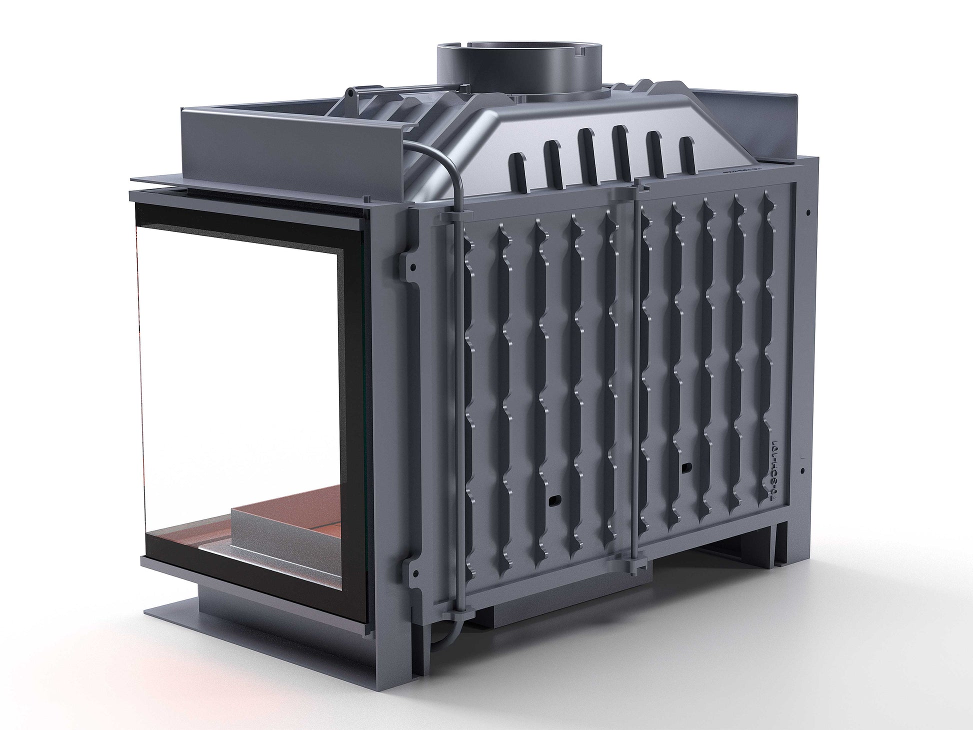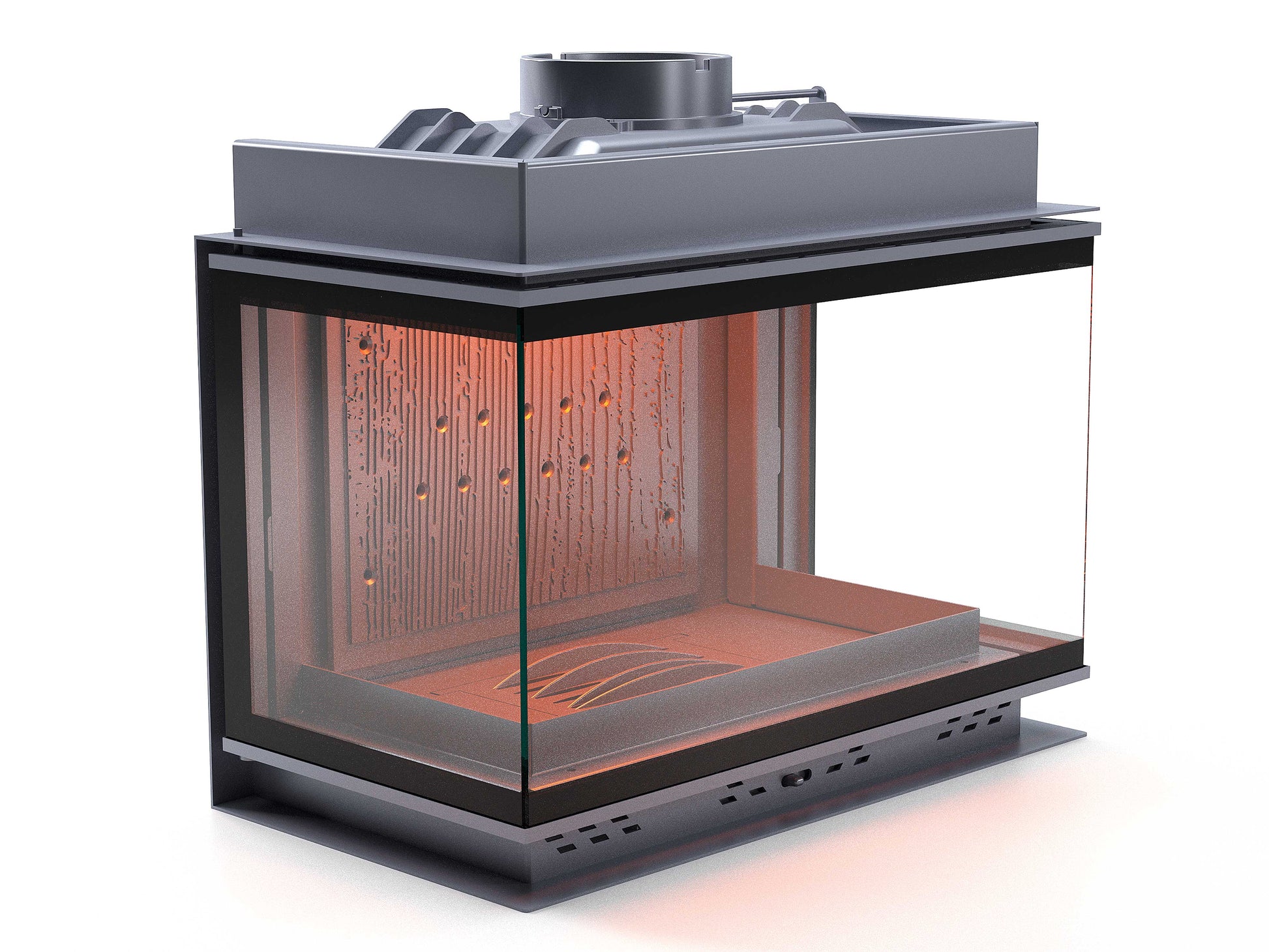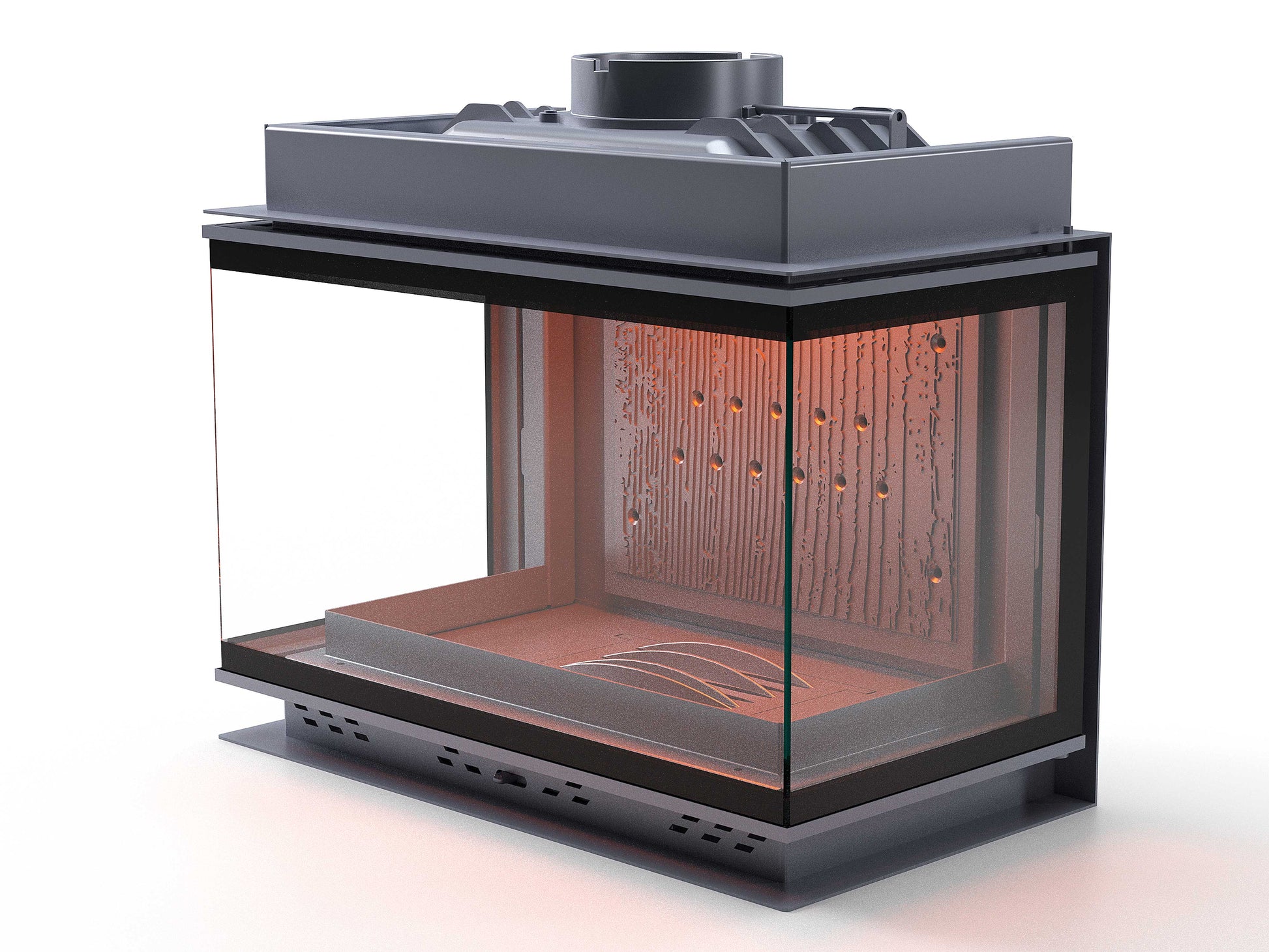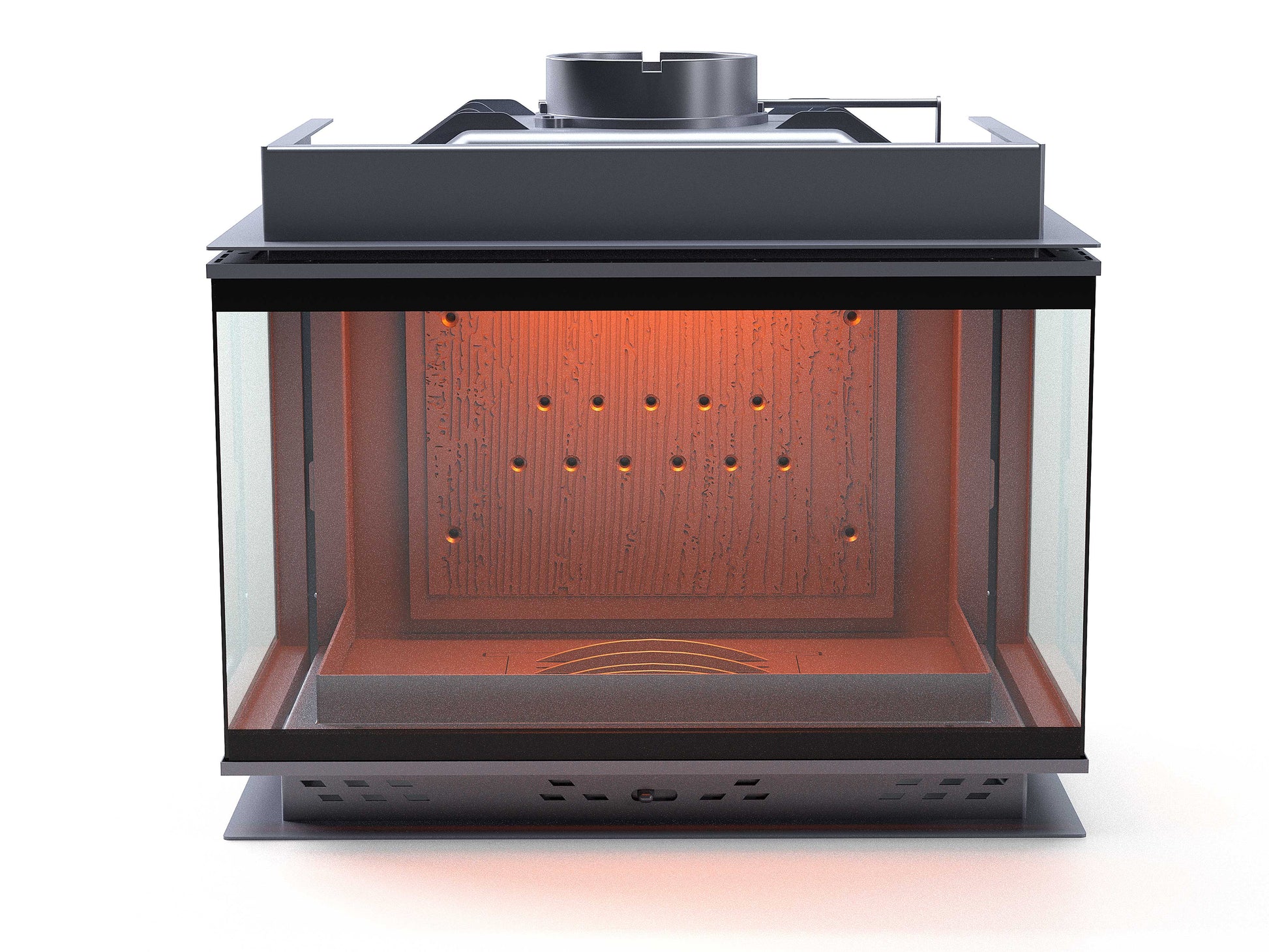 Black Glass Flap Cast Fireplace Chamber with Glass on Three Sides 70 cm