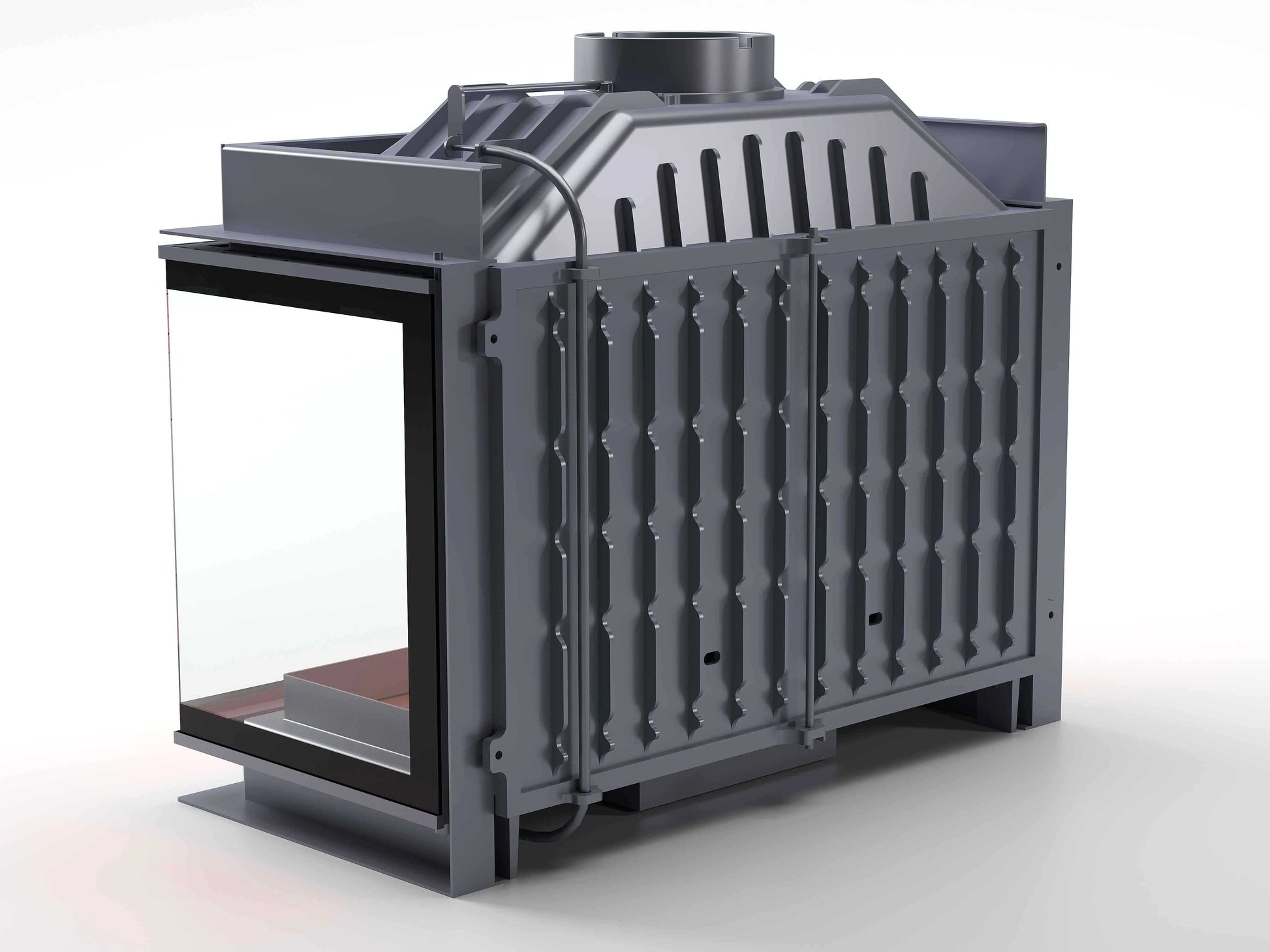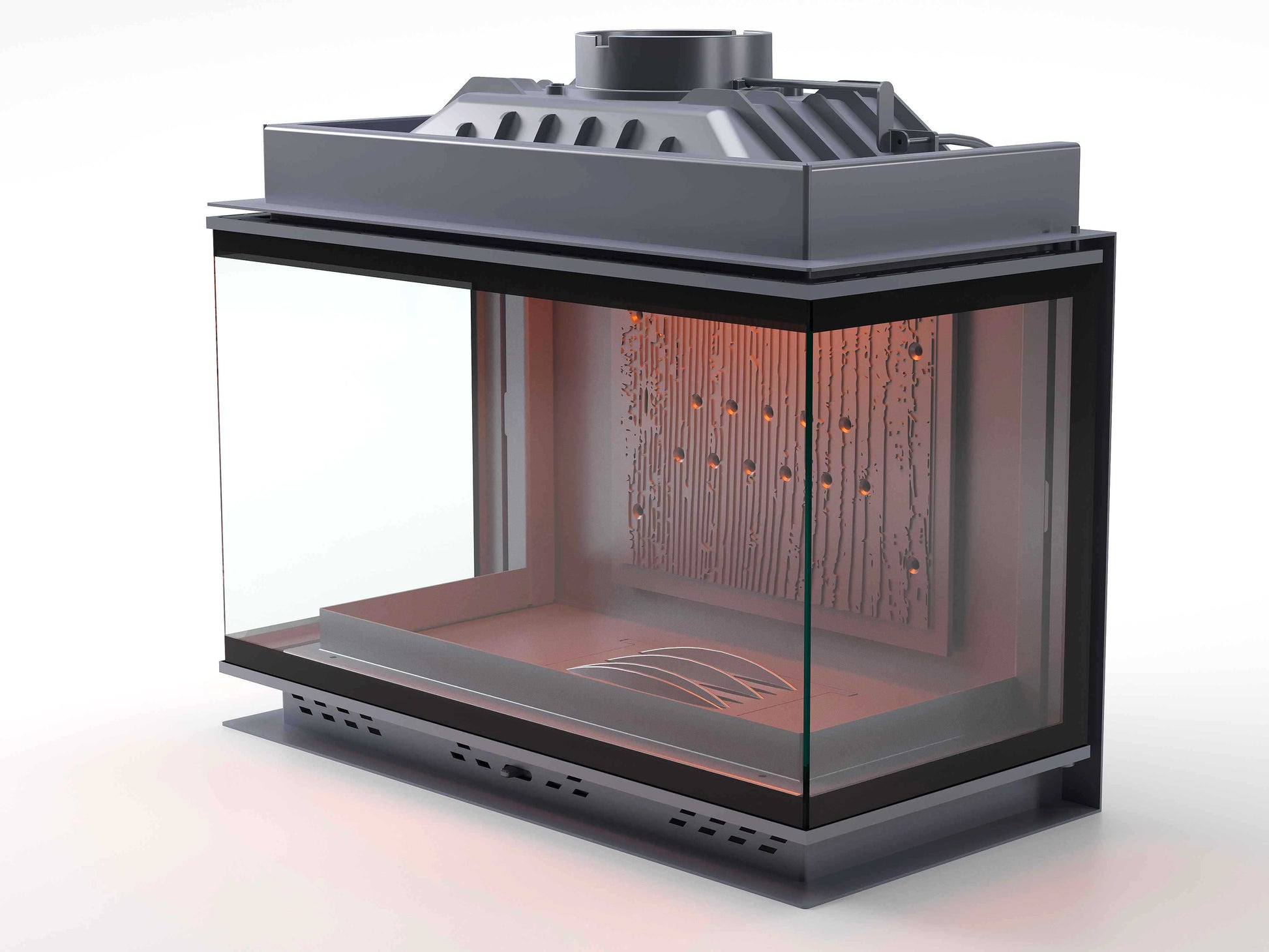 Black Glass Flap Cast Fireplace Chamber with Glass on Three Sides 80 cm